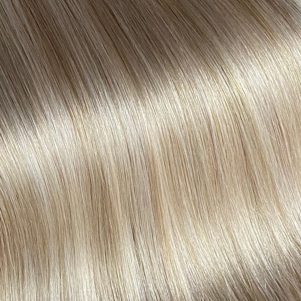 Champagne features a root balayage, blending golden, creamy, and ash blondes for a multidimensional effect.